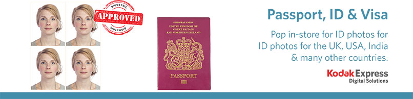 At Kodak Express we specialise in Photo I.D. Services. We supply Passport and Visa photos for most nations along with general identity photos for all kinds of Licenses, Passes and Age-Related I.D. Cards. Our specialists in-store will advise you on the latest requirements from the relevant authorities to make sure we can offer you the best service possible. We also offer a While You Wait or Collect Later service.